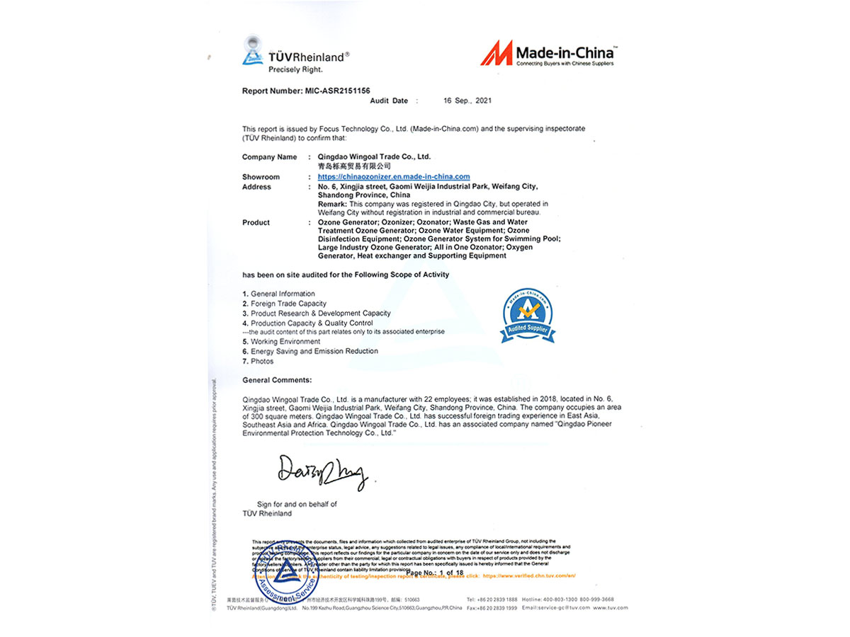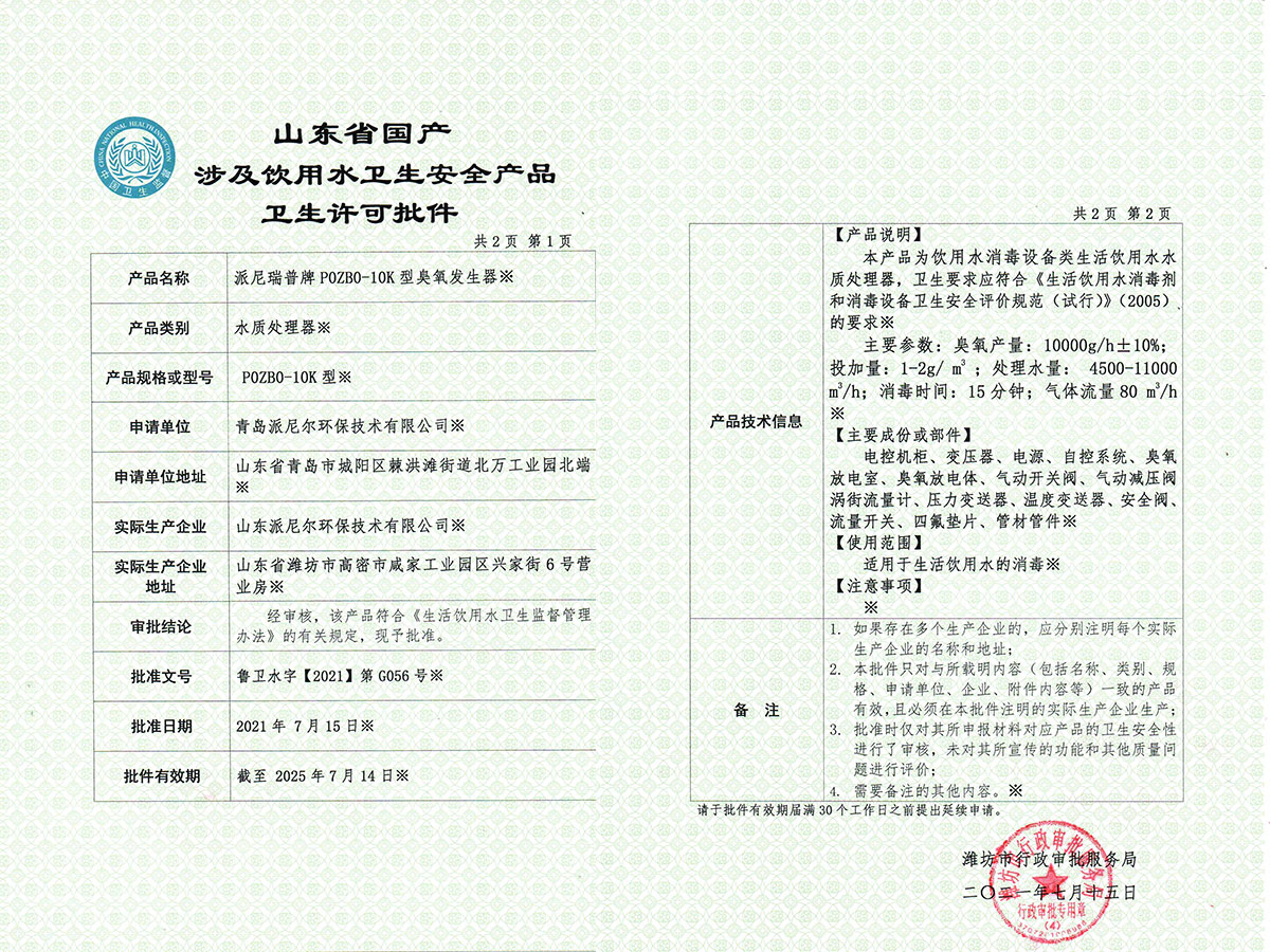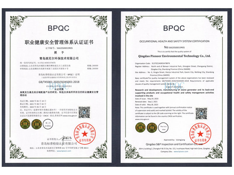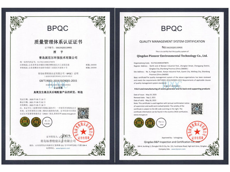 派尼爾已通過了國家級高新技術(shù)企業(yè),ISO9000質(zhì)量體系認(rèn)證、ISO14000環(huán)境體系認(rèn)證、OHSAS18000職業(yè)健康管理體系認(rèn)證、知識產(chǎn)權(quán)管理體系認(rèn)證、臭氧產(chǎn)品“專精特新”證書等。公司擁有含發(fā)明專利,新型專利,軟件著作權(quán)等二十幾項(xiàng)國家級知識產(chǎn)權(quán)。